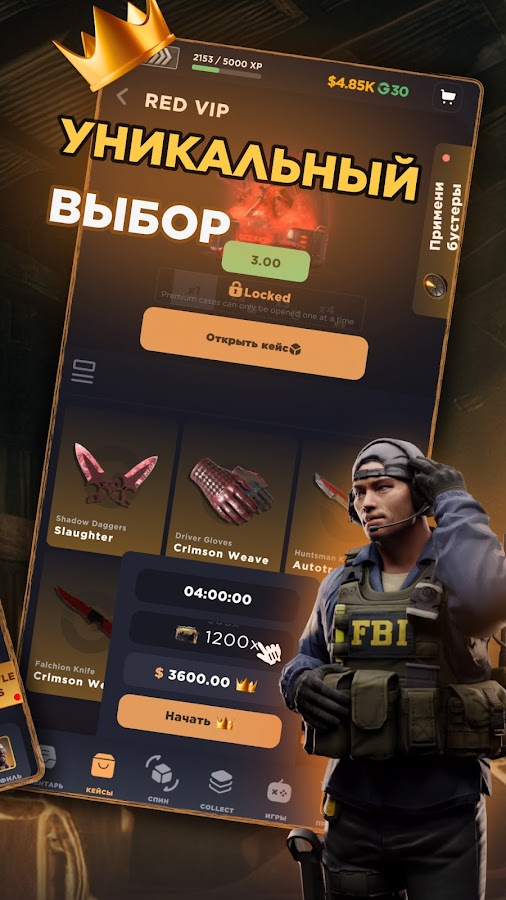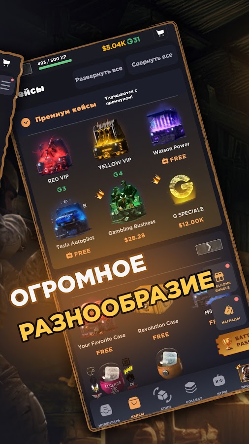 Тебя ждёт классный геймплей, где можно открывать классические кейсы как в кс2 или ксго, соревноваться с друзьями в кейс баттле, или поднимать виртуальный баланс в кликере.