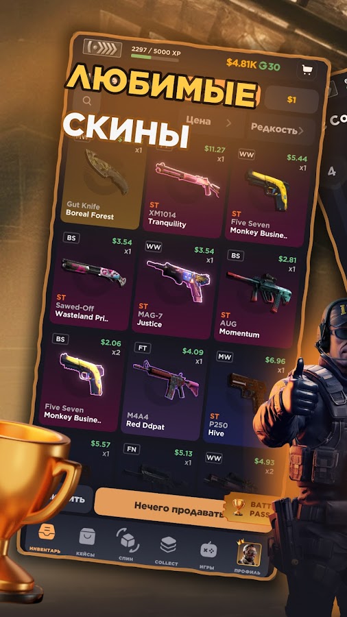 Если ты любишь скины CS2, открытие кейсов и симуляторы, основанные на стратегии, эта игра станет твоей новой любимой. Играй офлайн или онлайн. Соревнуйся или расслабляйся. Собирай, качайся и выигрывай в кейс баттле.