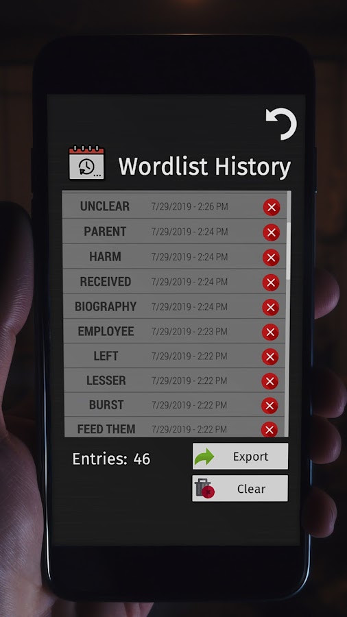 🗣️ Ghost Hunting Tools включает в себя обширный словарь из тысяч слов. Приложение выбирает слова, отражая инструменты, используемые мировыми исследователями паранормальных явлений, для достижения глубоких результатов. Время обработки может отличаться в зависимости от возможностей вашего устройства.