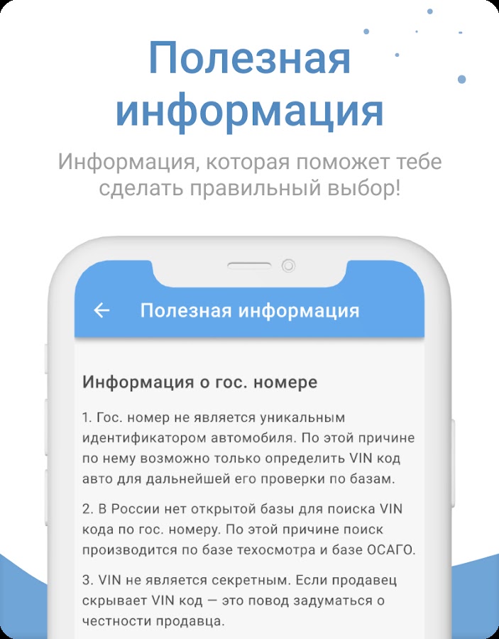 Данные являются наиболее полными и достоверными поскольку приложение объединяет много баз данных: ГИБДД, ЕАИСТО, РСА, Федресурс, нотариальная палата, база такси и другие официальные и проверенные ресурсы.