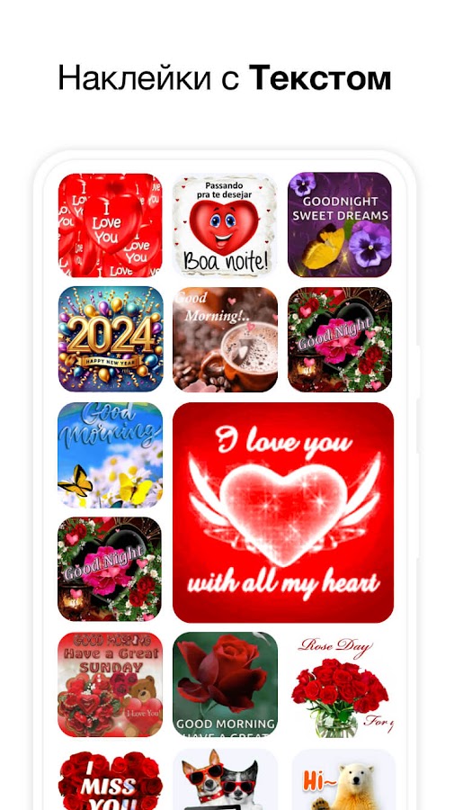 Отправляйте любимым людям любовные GIF-наклейки и сердечки при каждой романтической беседе. Они скажут больше, чем слова! Любовная коллекция включает наклейки с поцелуями, GIF-файлы с сердечками для тех, кто скучает, любовные наклейки с объятьями и GIF-смайлики для Дня святого Валентина, предложения, годовщины, свадьбы и т. д.