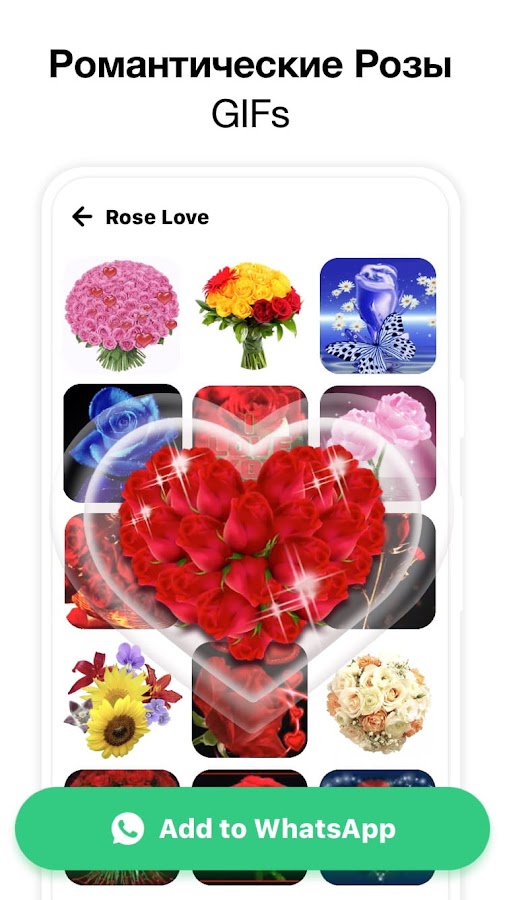Присылайте GIF-наклейки с красными розами и цветочными букетами, чтобы выражать свою любовь каждый день! Добавьте романтической атмосферы своим ежедневным разговорам с помощью романтичных GIF-наклеек с розами. Отметьте историю своей любви красивым GIF цветочным букетом или GIF-наклейкой красной розы!
