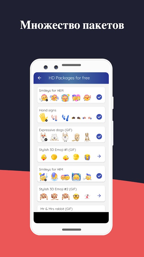 Все стикеры могут быть добавлены как стикеры WhatsApp или могут использоваться с любым приложением для обмена сообщениями в виде изображения в формате GIF.