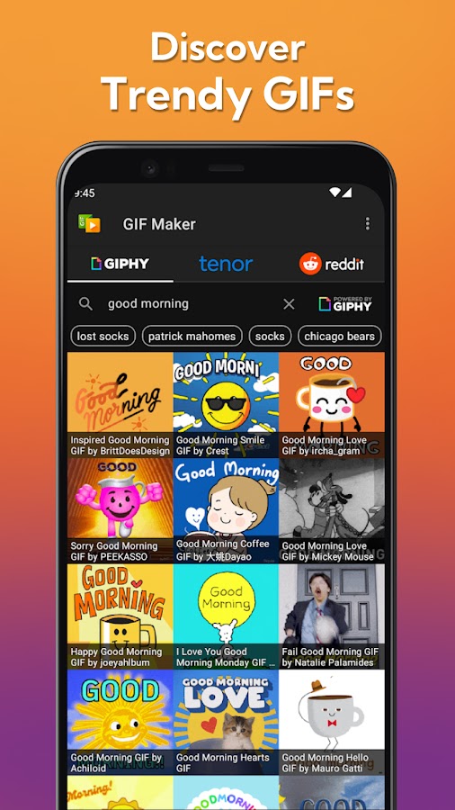 ✓ Находите и ищите модные GIF из Giphy, Tenor и Reddit.