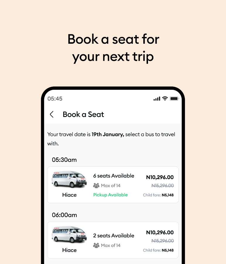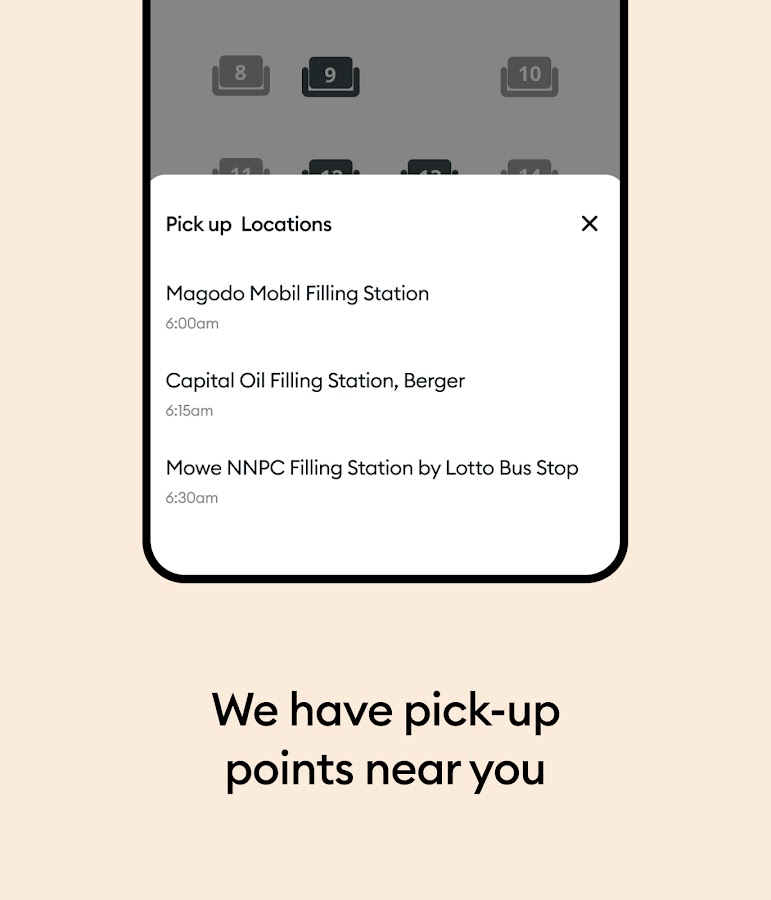 Угадай, что нового? Теперь вы можете подписаться на услугу получения трансфера прямо в своем мобильном приложении. Это означает, что вы можете избавить себя от хлопот, связанных с переходом на GIGM-терминал, или сократить время в пути, выбрав возможность забрать их у любого из нескольких наших трансферов. местах. Действительно, мы вывозим автомобильные перевозки в пределах Нигерии на другой уровень.