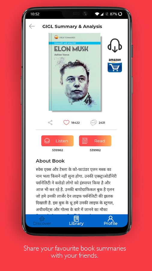 7. Рекомендации: Эксперты GIGL, создающие контент, читают много книг каждую неделю, и в итоге мы читаем много разных авторов. Раздел «Рекомендации» в приложении GIGL поможет вам с краткими заметками или обзорами, которые могут быть полезны всем читателям при выборе книг для чтения. Пока что мы можем предложить вам лучшие аудиокниги.