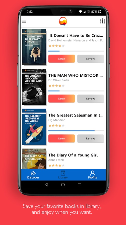 Скачайте и читайте электронные книги или аудиокниги, чтобы слушать бестселлеры или их краткие обзоры на своем Android-устройстве с минимальным потреблением трафика.