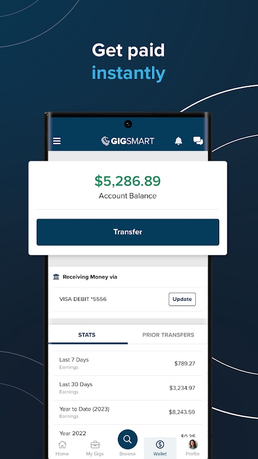 * Легко отслеживайте свои доходы от Shift Gig с помощью Worker Wallet и получайте доступ к своим доходам в тот же день с помощью Rapid Transfer из нашей безопасной платежной системы в приложении.