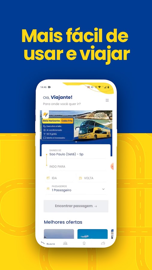 Избегайте очередей на автовокзалах и наслаждайтесь простотой и легкостью начала поездки на автобусе. Платите любой кредитной картой до 12x и, если хотите, вы также можете оплатить через PIX.