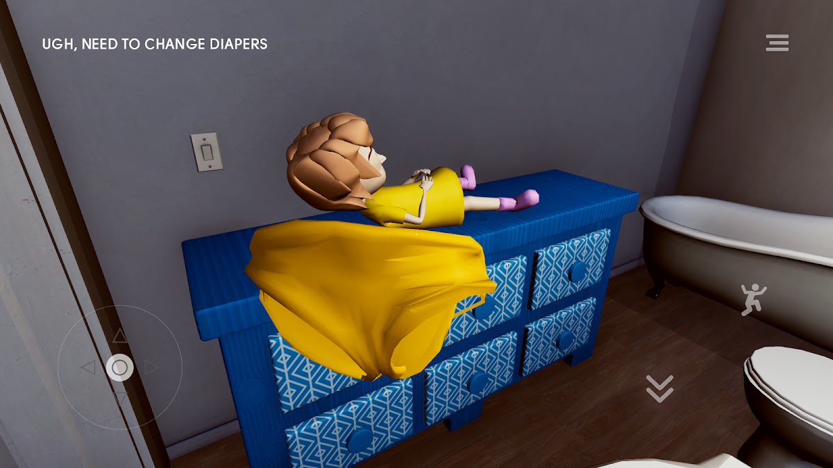 Зачем вы согласились посидеть с ребенком, вряд ли кто-то из нянь подумал бы, что это может закончиться очень неприятной историей и ей придется приглядывать за малышом, явившимся сюда прямо из ада гренни. А именно с таким ребенком вам и придется иметь дело. Малыш в жёлтом вызывает только одно чувство — хочется в ужасе бежать от него подальше. Обычные вещи такие, как кормление, смена подгузника и укладывание спать превращаются в пугающие квесты. Но вы приняли решение совладать с ситуацией. Стойко выполняйте свои обязанности и старайтесь не обращать внимание на то, что он исчезает, стоит только отвернуться и корчит страшные рожи, от которых у вас душа уходит в пятки. Это всё страшилки, не воспринимайте страшные игры всерьез!