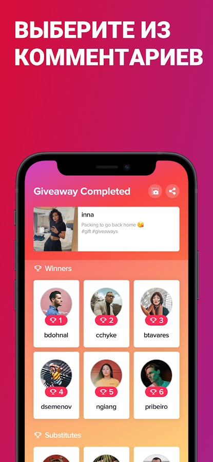 Скачайте приложение Розыгрыш для Instagram для Android бесплатно - последняя версия (1.2.1) уже доступна для установки на ваш телефон или планшет.