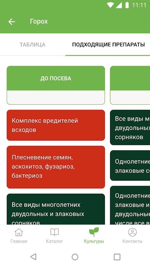 — Комплексные программы защиты для каждой культуры – составлены в виде таблиц, где по фазам развития подобраны необходимые препараты.