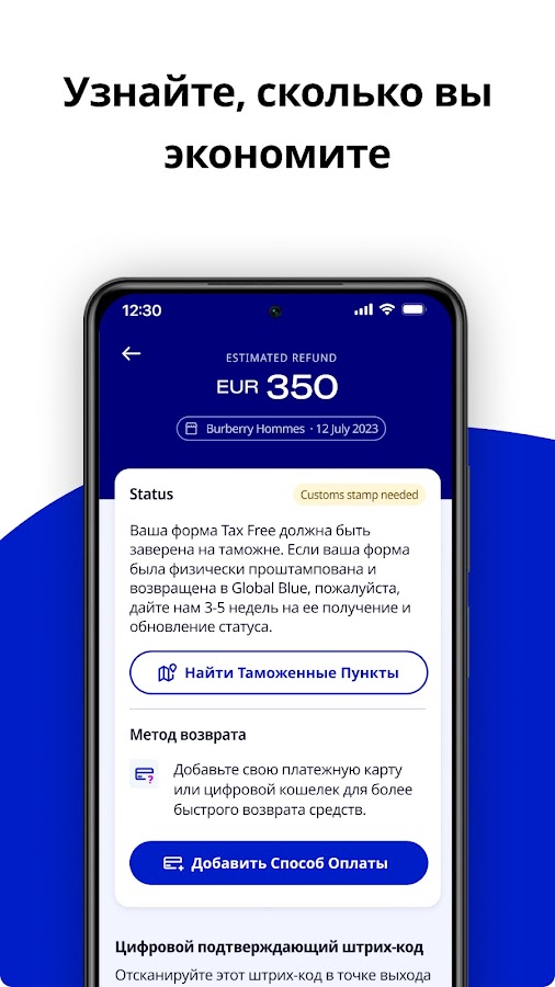 Это приложение станет вашим незаменимым индивидуальным помощником на каждом этапе Tax Free шоппинга.