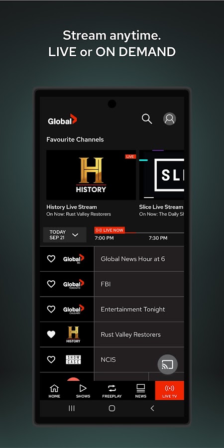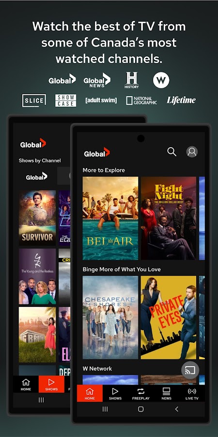 В одном приложении есть все. Приложение Global TV теперь является домом для некоторых из самых популярных сетей в Канаде: Global, Home Network, Flavour Network, W Network, Slice, Showcase, History, Adult Swim и National Geographic!