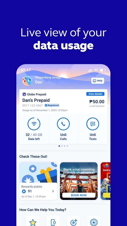 — Зарабатывайте баллы, загружая промоакции и оплачивая счета Globe в GlobeOne