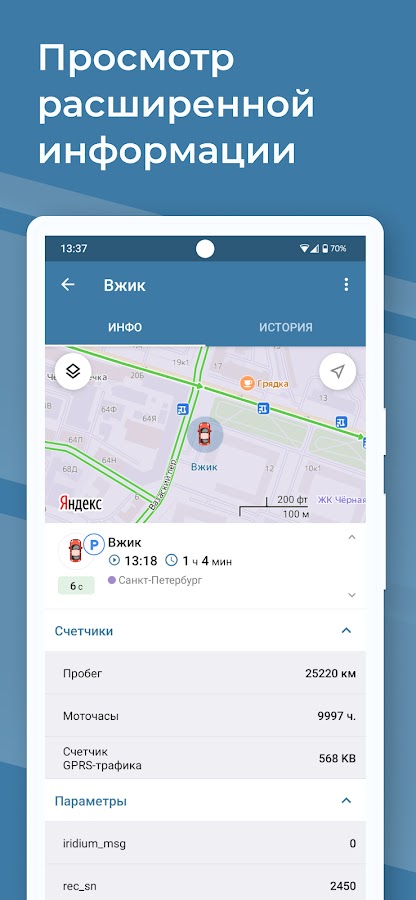 — Отслеживание любых изменений скорости движения, моточасов, пробега, температуры, уровня топлива т.д.