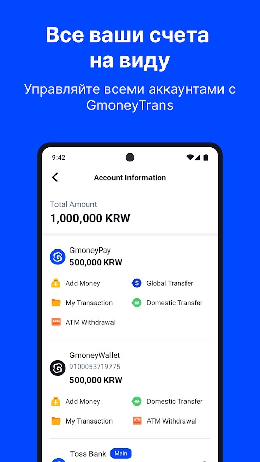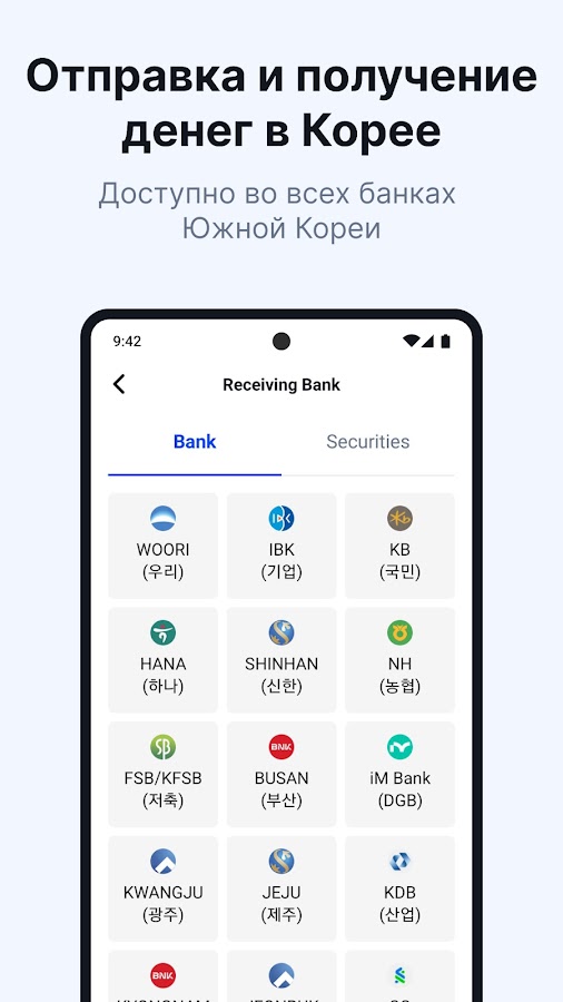 • Отправляйте деньги во все корейские банки и получайте их мгновенно