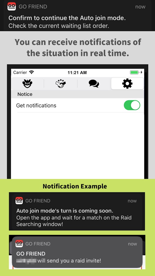 GOFRIEND — это приложение для удаленных рейдов, поиск тренера по имени, общения с друзьями и т. д.