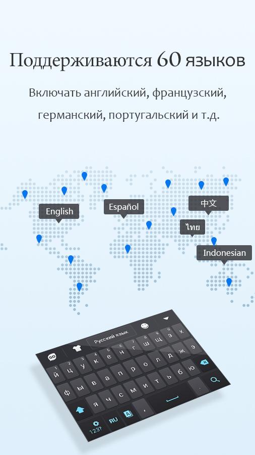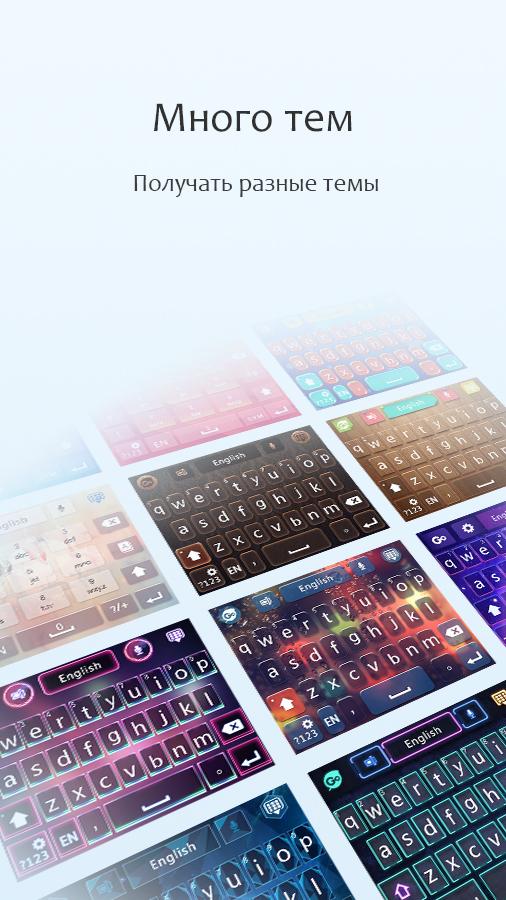 GOKeyboard имеет больше 10000 разных и красивых тем, и будет обновить новые темы каждую неделю. К тому же, можно установить звуки, раскладки и марсианский язык по Вашему требованию.