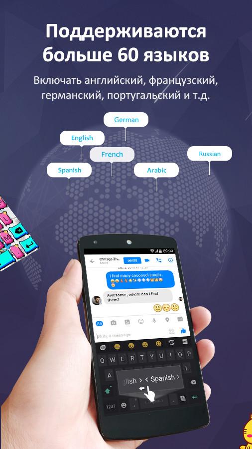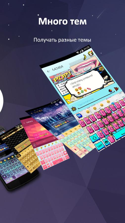 GO Keyboard поддерживает более 60 языков и тысячи тем. Эмодзи, смайлики и стикеры на клавиатуре совместимы со всеми популярными приложениями.