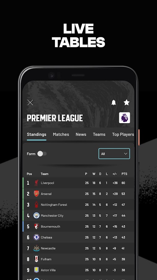 — Таблицы и турнирная таблица: немедленный доступ ко всем последним таблицам и турнирной таблице.