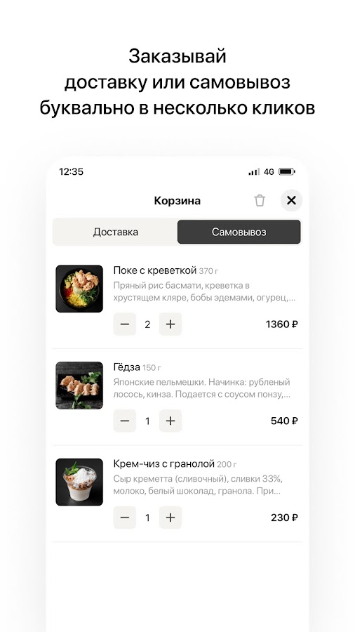 — Быстрый заказ с мгновенным подтверждением через приложение.