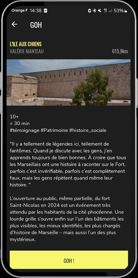GOH — это мобильное приложение, предлагающее геолокализованные звуковые туры: новый способ открыть для себя место благодаря захватывающему и интерактивному звуку.
