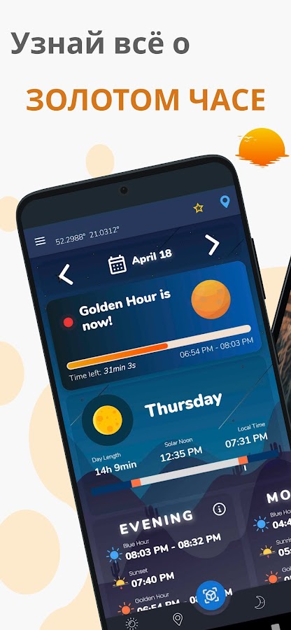 Приложение для отслеживания золотого часа и солнца🏆 ❤️