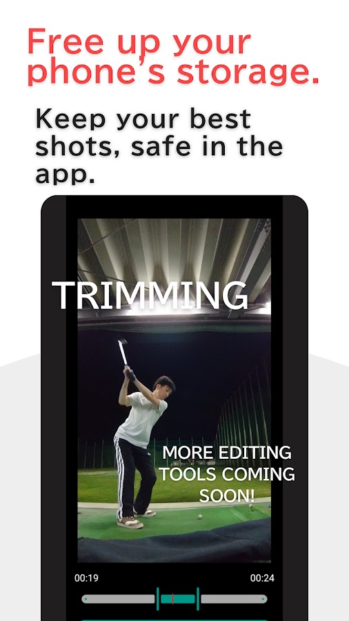 ▼ Организуйте свои видео с ударами. После импорта видео в приложение вы можете безопасно удалить оригиналы из галереи телефона. Храните свою важную коллекцию ударов в одном надежном месте. Кроме того, используйте функцию обрезки, чтобы вырезать только то, что вам нужно, и сэкономить ценное место для хранения.