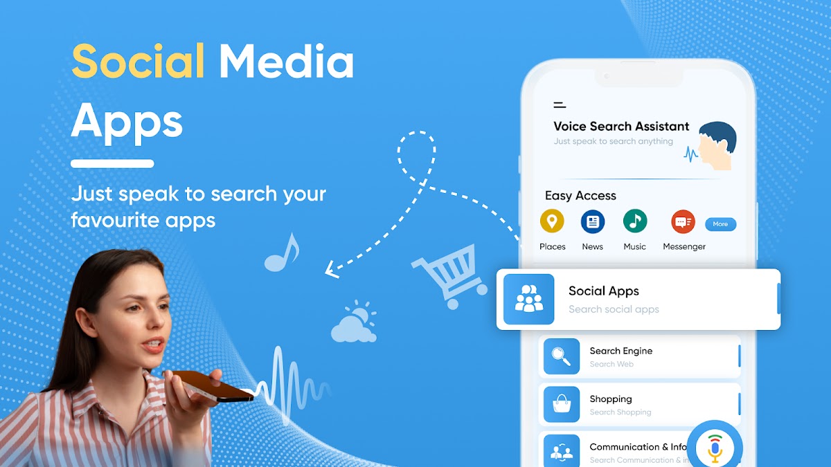Интерфейс голосового поиска / 语音版 имеет три основные особенности; дом, переводчик и история. Домашняя функция загрузки приложения голосового поиска / 语音助手 включает в себя список платформ, таких как социальные приложения, поисковые системы, покупки, общение и информация и другие. Пользователь также может искать любое конкретное приложение, используя панель поиска вверху. Функция перевода приложения голосового помощника / 嘟嘟语音 позволяет пользователю переводить текст на любой язык. Функция истории приложения личного помощника / 个人智能助理 позволяет пользователю просматривать все поисковые запросы в истории. Помощник для смартфона / 音声検索 удобен и совместим с мобильными устройствами. Пользовательский интерфейс spracherkennung / 语音输入 прост в навигации и не требует профессионального руководства.