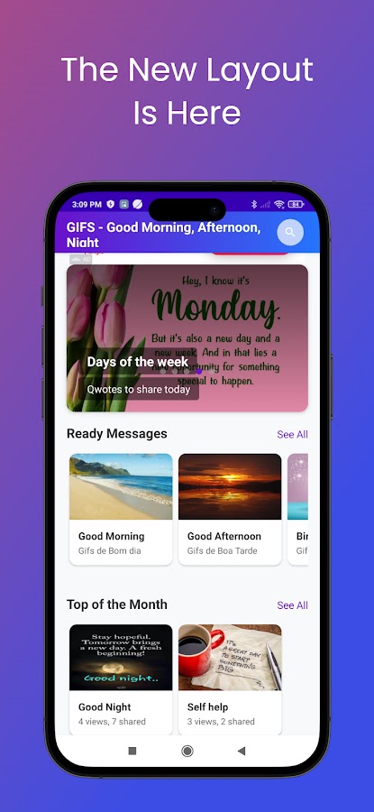 Лучшее приложение в категории GIF-файлов, изображений «Доброе утро», «Добрый день» и «Спокойной ночи», готовых к ежедневному обмену сообщениями с друзьями и семьей. Сотни бесплатных анимированных сообщений, которыми вы можете поделиться и отправить своим близким.