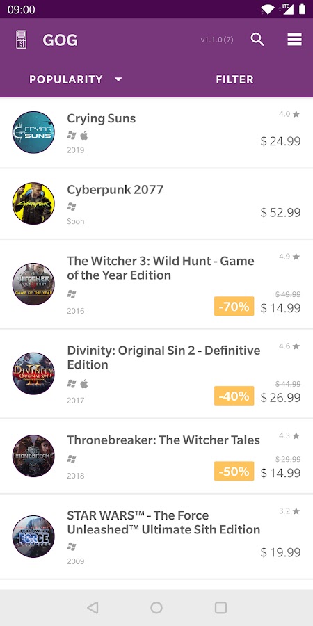 Более быстрое и простое Android-приложение для GOG.com. GOG представляет собой платформу для цифровой дистрибуции с подборкой видеоигр.