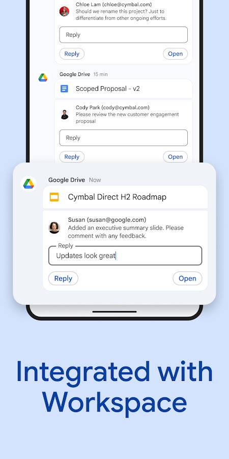 • Приложение Google Диск для Chat поможет отслеживать запросы на одобрение и комментарии.