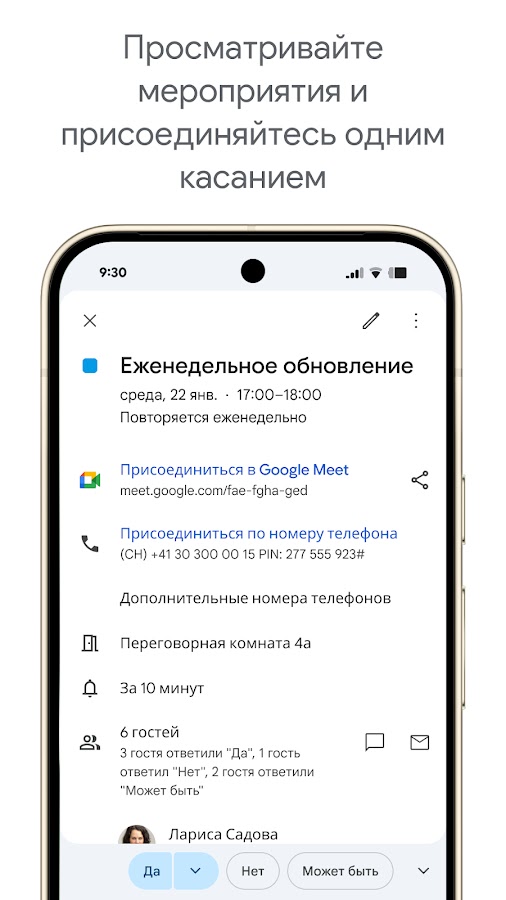 • Календарь можно использовать на устройствах Android и Wear OS – данные мгновенно синхронизируются на всех устройствах, где вы вошли в аккаунт Google.