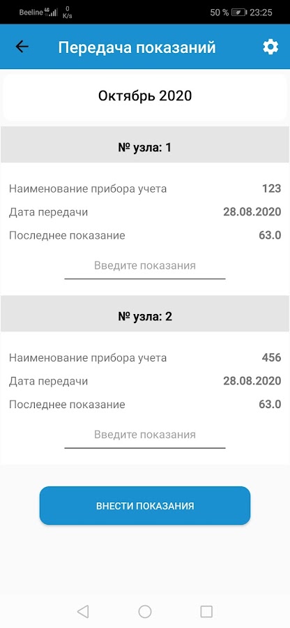 • передачи приборов учёта (счётчиков);