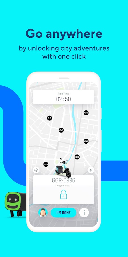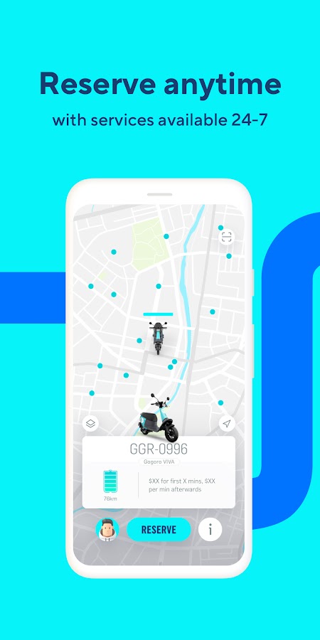Служба GoShare доступна круглосуточно, а приложение позволяет вам просматривать ближайшие скутеры GoShare и выбирать тот, который вам нужен.