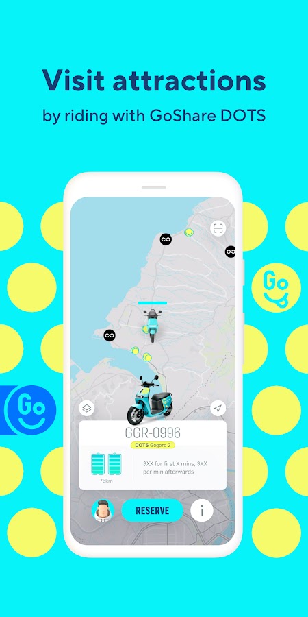 С GoShare или GoShare DOTS вы можете найти, забронировать и покататься на Gogoro Smartscooter в любое время, когда вам это нужно.