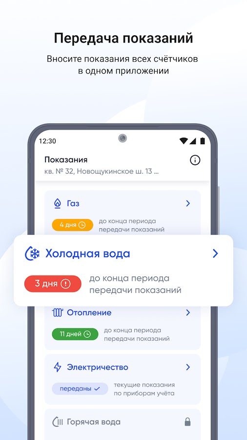 — передавать показания всех счётчиков разных коммунальных ресурсов;