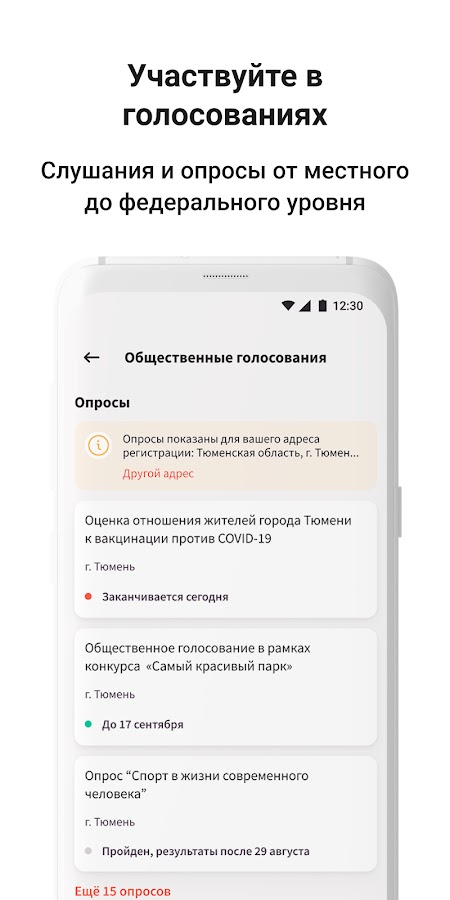— Принимайте участие в опросах: делитесь мнением по улучшению качества работы и благоустройству, предлагайте варианты по улучшению работы местных органов власти, ЖКХ и не только
