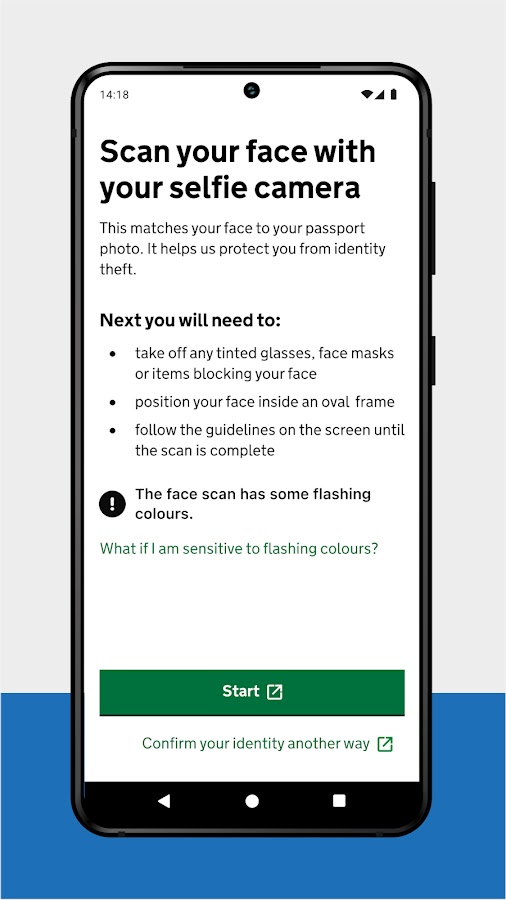 Проверка работает путем сопоставления вашего лица с фотографией в вашем удостоверении личности.