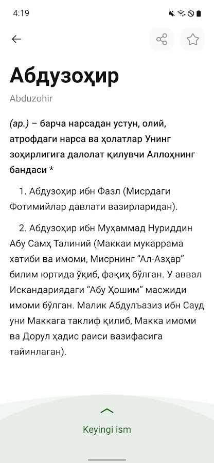 Ushbu mobil ilova ustoz Ziyovuddin Rahimning «Go’zal ismlar ma`nosi» kitobi asosida tayyorlab chiqildi !.