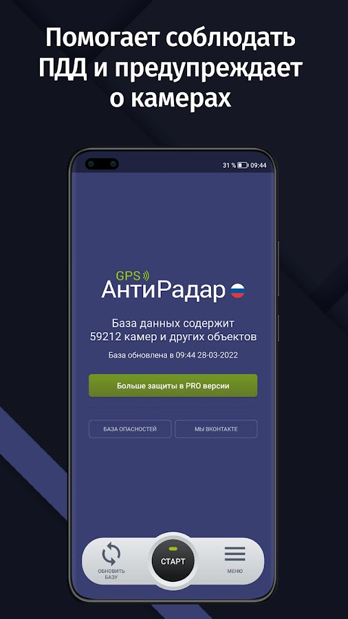 • Используется актуальная база камер и опасностей RadarBase.info.
