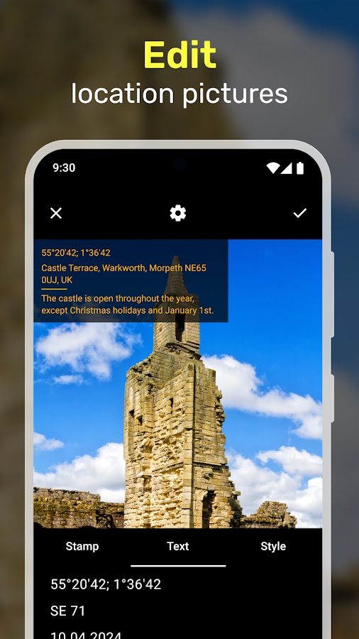 — добавлять и редактировать геоштампы (метки с геоданными) к фото и видео,