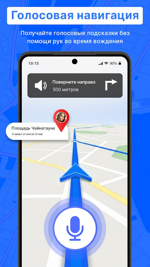Получайте пошаговые голосовые подсказки с GPS-навигацией. Быстро находите нужные места, восстанавливайте маршрут и следуйте кратчайшим маршрутом из вашего текущего местоположения.