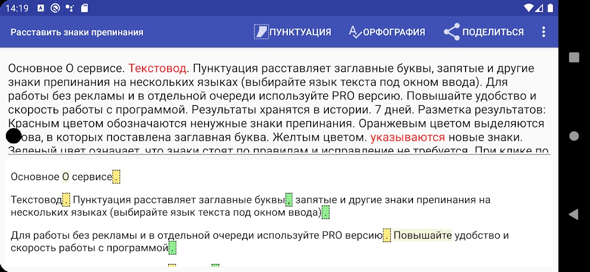 Текстовод Пунктуация поможет расставить знаки препинания, запятые в тексте на русском языке автоматически. Так же в приложении можно проверить текст на наличие орфографических и грамматических ошибок.