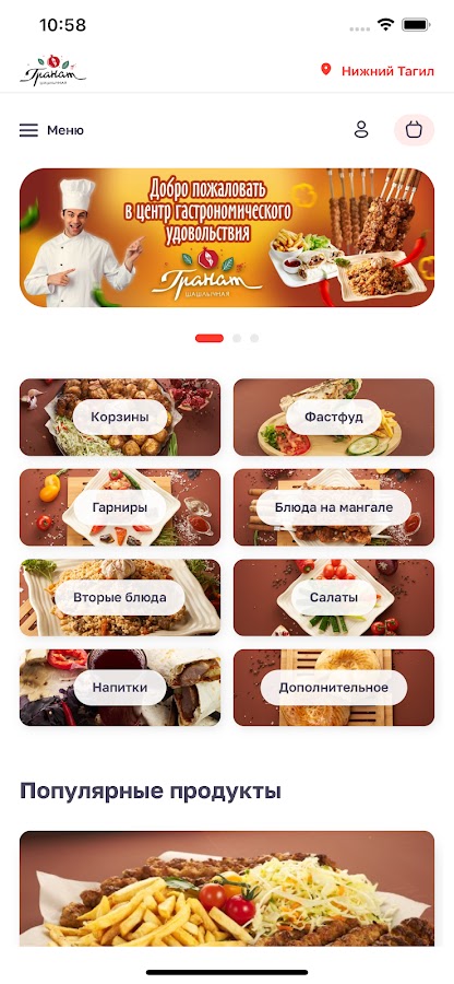 Доставка блюд армянской кухни по Нижнему Тагилу в мобильном приложении «Шашлычная Гранат» — доставим в течение 90 минут+_ 10 минут, самовывоз от 30 минут.