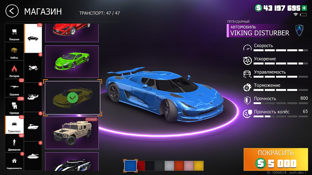 Десятки видов машин от пикапов до люксовых суперкаров. Все самые топовые тачки из мира гонок!