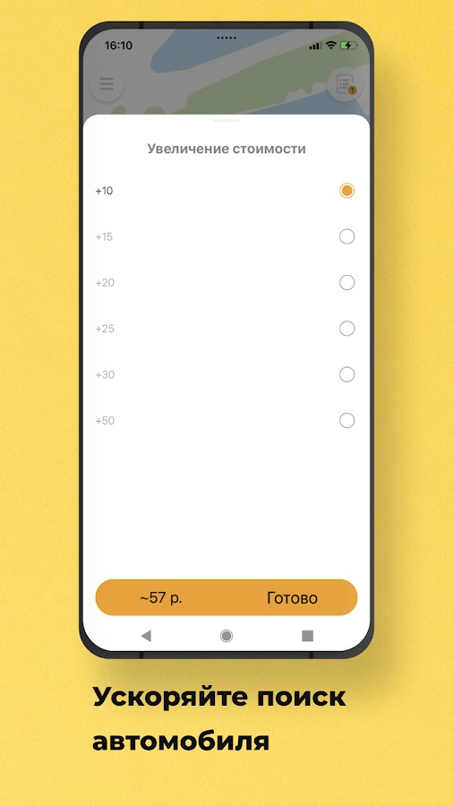 🚕 Сокращайте время ожидания, увеличив стоимость заказа. Так водитель быстрее заберет ваш заказ. Пригодится, если нет времени ждать даже одну лишнюю минуту.