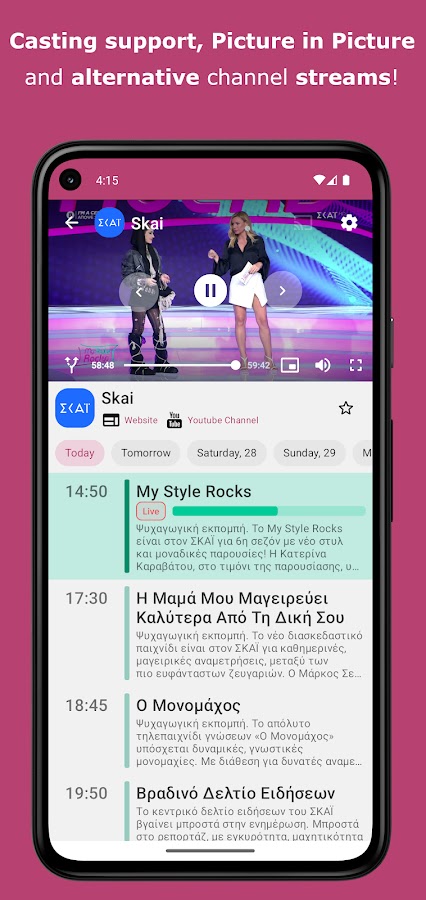 — EPG — Телегид внутри приложения, отображает список телепередач для телеканалов Греции на 5 дней вперед!