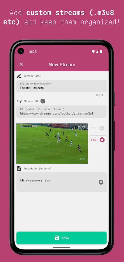 Вы также можете добавить свои собственные потоки и использовать приложение в качестве проигрывателя IPTV по URL-адресу с поддержкой m3u (видеоплеер URL-адреса).